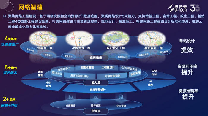 當(dāng)前,運(yùn)營商網(wǎng)絡(luò)工程建設(shè)領(lǐng)域痛點突出,“資源數(shù)據(jù)割裂、設(shè)計標(biāo)準(zhǔn)不統(tǒng)一、施工精準(zhǔn)度不足”的問題已成為行業(yè)普遍困擾。傳輸、寬帶、政企、基站四大類工程場景需求差異顯著,而傳統(tǒng)設(shè)計依賴人工勘察,不僅耗時耗力,還易因數(shù)據(jù)誤差引發(fā)資源錯配,直接影響網(wǎng)絡(luò)建設(shè)質(zhì)量與后續(xù)運(yùn)維效率。針對這一核心痛點,思特奇“網(wǎng)絡(luò)智建”解決方案以物理資源與空間資源為雙數(shù)據(jù)底座,聚合網(wǎng)絡(luò)設(shè)計五大核心能力,構(gòu)建全流程自動化管控體系,為四類工程場景提供標(biāo)準(zhǔn)化、智能化支撐。
