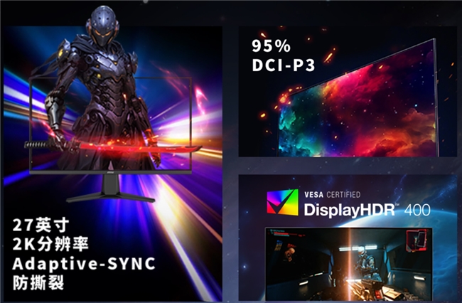 此外,顯示器支持HDR400高動(dòng)態(tài)范圍,亮度達(dá)400cd/m²,配合95% DCI-P3廣色域覆蓋,無(wú)論是游戲畫面還是影視內(nèi)容,均能呈現(xiàn)豐富層次與鮮活色彩。