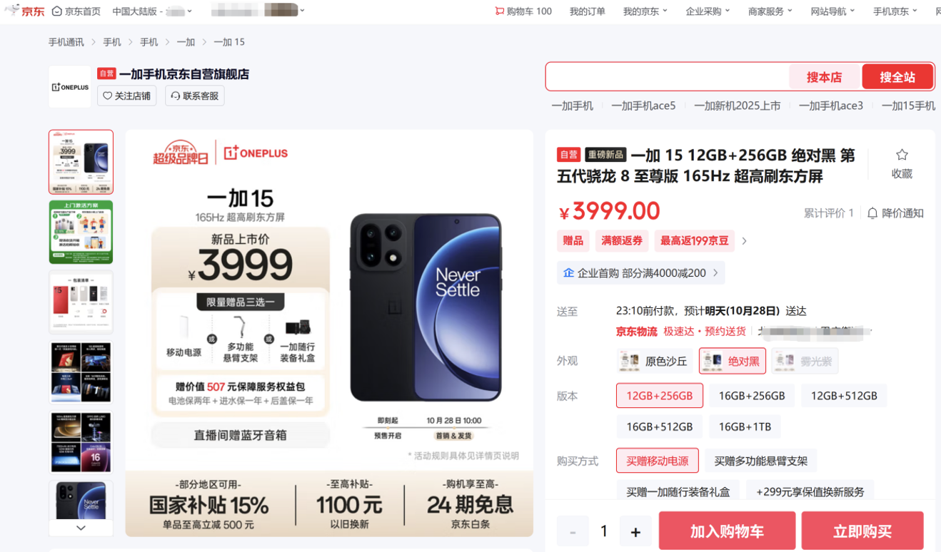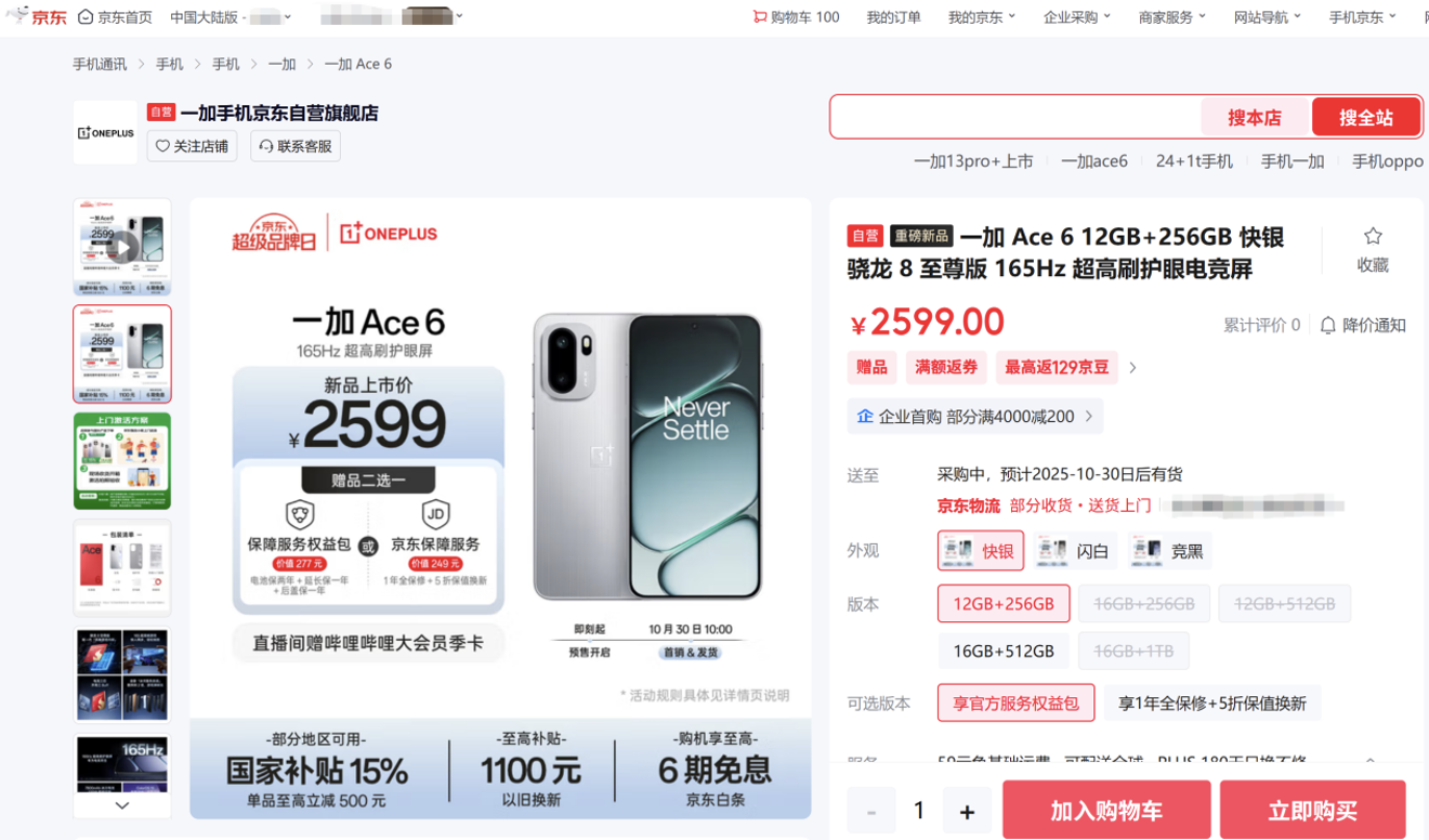 10月27日,一加 15和一加 Ace 6正式發(fā)布,其中,一加 15售價(jià)3999元起,將于10月28日10:00正式開售;一加 Ace 6售價(jià)2599元起,將于10月30日10:00正式開售。為帶給消費(fèi)者更多權(quán)益,京東攜手一加打造先人一步加速換新計(jì)劃,提供限量一加 15和一加 Ace 6現(xiàn)貨優(yōu)先發(fā)貨,最快發(fā)布會后半小時(shí)送達(dá),且先人一步下單指定版本一加 15限量加贈京東PLUS會員京典年卡,先人一步下單指定版本一加 Ace 6限量加贈一加編織游戲數(shù)據(jù)線。到京東APP搜索“一加超能玩家”進(jìn)入互動游戲活動頁,參與游戲贏一加新機(jī)、耳機(jī)、無畏契約官方周邊、京東外賣券等,其中10月27日至28日有機(jī)會贏30元京東外賣券。值得一提的是,發(fā)布會一加 15發(fā)布后《長安的新機(jī)》創(chuàng)意視頻上線,由B站up主7鯨尾出演新機(jī)使,和一加社區(qū)負(fù)責(zé)人藍(lán)帥一起為京東先人一步用戶送達(dá)一加 15,京東秒送最快半小時(shí)達(dá)。
