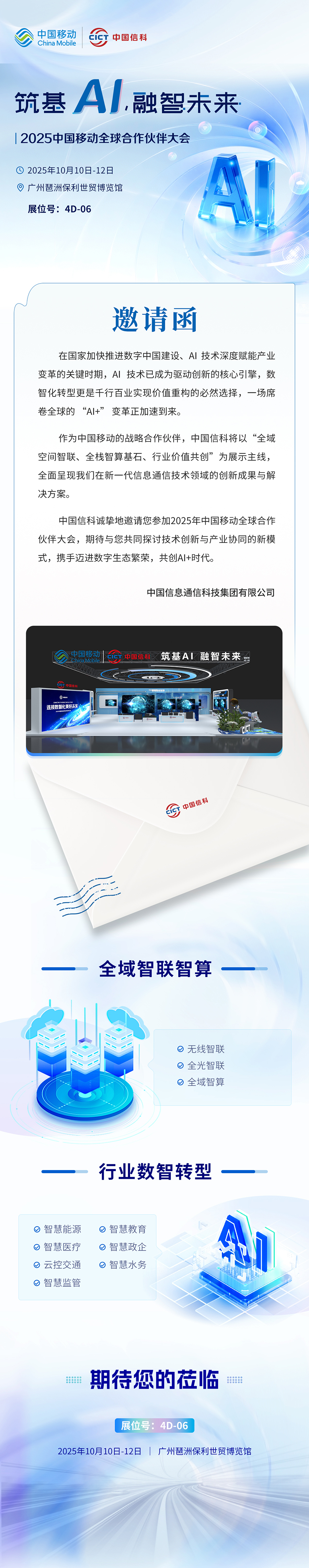 碳硅共生,合創(chuàng)AI+時(shí)代。2025年10月10-12日,第13屆中國(guó)移動(dòng)全球合作伙伴大會(huì)將在廣州召開。