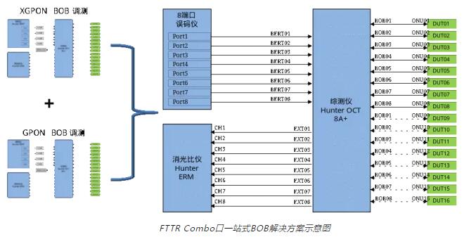 通過極簡化測試流程,極致利用設(shè)備能力。通過XG(S)-PON/GPON雙模切換,實現(xiàn)XG(S)-PON/GPON一站式 BOB 校準(zhǔn)或測試。如下圖所示: