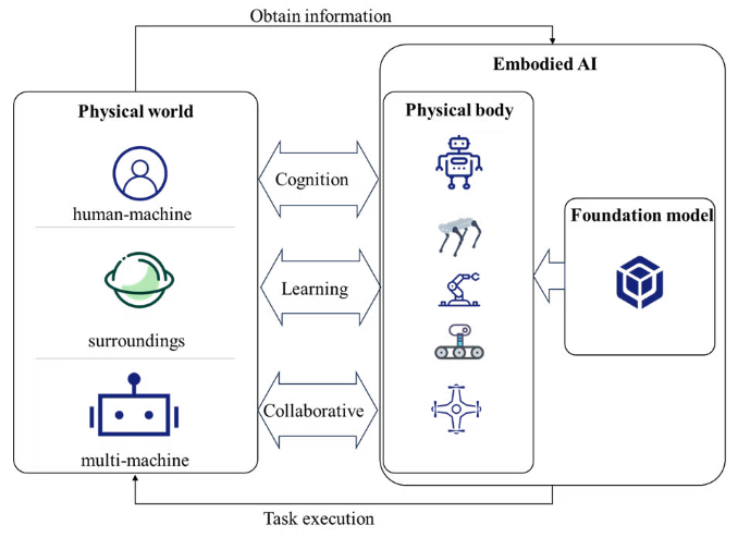 《具身智能系統(tǒng)框架及能力要求》(ITU-T F.748.66,Requirements and Framework for embodied artificial intelligence systems)明確了具身智能的定義、系統(tǒng)框架和關(guān)鍵能力要求。標(biāo)準(zhǔn)編制過程中起草組與各國代表就具身智能定義進(jìn)行充分探討,并達(dá)成如下共識:具身智能(Embodied Artificial Intelligence)指與物理實體融合的人工智能,能自主與物理世界交互并適應(yīng)環(huán)境。具身智能概念及關(guān)鍵特征示意圖如下圖所示。該標(biāo)準(zhǔn)作為統(tǒng)領(lǐng)性標(biāo)準(zhǔn),為全球具身智能領(lǐng)域的技術(shù)創(chuàng)新和研發(fā)實踐提供了統(tǒng)一的技術(shù)框架,有力促進(jìn)國際技術(shù)互操作與互認(rèn),為后續(xù)我國在ITU-T推動具身智能領(lǐng)域標(biāo)準(zhǔn)國際化工作奠定基礎(chǔ)。