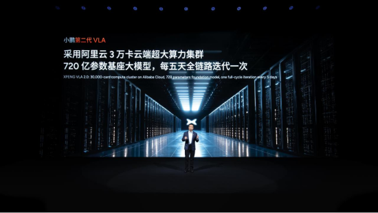 這種顛覆背后,是 “大算力 + 大數(shù)據(jù)” 的雙重支撐。小鵬的 3 萬卡云端算力集群常年保持 90% 以上運行效率,720 億參數(shù)的基座模型每五天就能完成一次全鏈路迭代;訓(xùn)練數(shù)據(jù)更夸張:近 1 億 clips(片段)的真實駕駛視頻,無需人工標注,覆蓋的極限場景相當于人類司機連續(xù)開 6.5 萬年才能遇到!八粌H能執(zhí)行動作,還能理解物理世界規(guī)律,甚至推演未來場景! 何小鵬解釋,比如遇到突發(fā)的路口加塞,系統(tǒng)能提前預(yù)判對方軌跡,而不是等發(fā)生后再反應(yīng)。