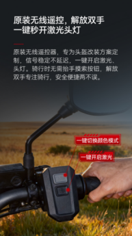 騎行時(shí),安全永遠(yuǎn)排在第一位。頻繁抬手操作設(shè)備不僅分心,更可能帶來安全隱患。為此,英睿為護(hù)衛(wèi)艦二代M3量身定制原裝無線遙控器,專為頭盔改裝方案打造,信號(hào)穩(wěn)定、響應(yīng)迅速、毫無延遲。只需輕輕一按,即可秒開激光輔助照明或切換模式,全程無需抬手摸索按鈕,讓你在專注路況的同時(shí),享受科技帶來的便捷與安心。