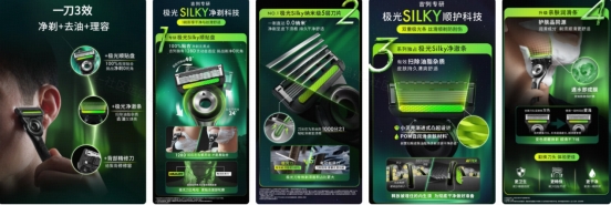 吉列極光刀精準(zhǔn)地解決了手動(dòng)剃須的幾大傳統(tǒng)痛點(diǎn),例如貼合不足導(dǎo)致剃不凈、刀片鋒利度與舒適度難兼顧和皮膚敏感易受刺激等等。最終呈現(xiàn)給用戶的,是一種高效、徹底、舒適且富有格調(diào)的剃須體驗(yàn)。