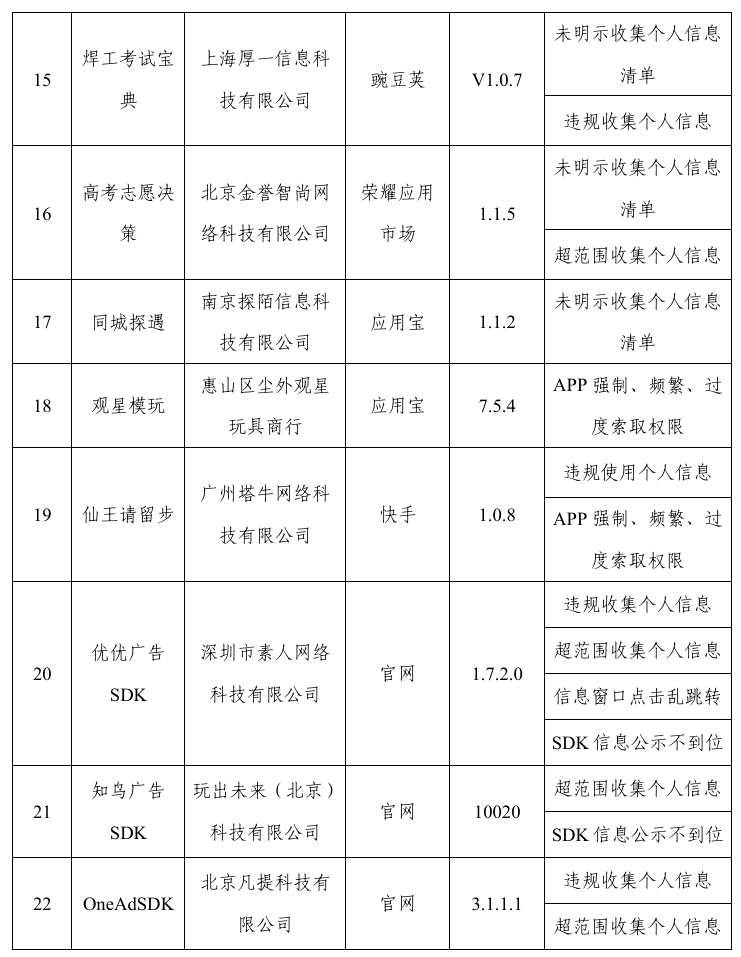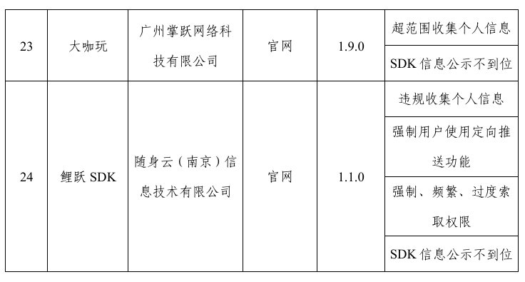 飛象網(wǎng)訊(致新/文)12月10日消息,工信部對APP、SDK違法違規(guī)收集使用個人信息等問題開展治理。近期,經(jīng)組織第三方檢測機構(gòu)進行抽查,共發(fā)現(xiàn)24款APP及SDK存在侵害用戶權(quán)益行為(詳見附件),現(xiàn)予以通報。