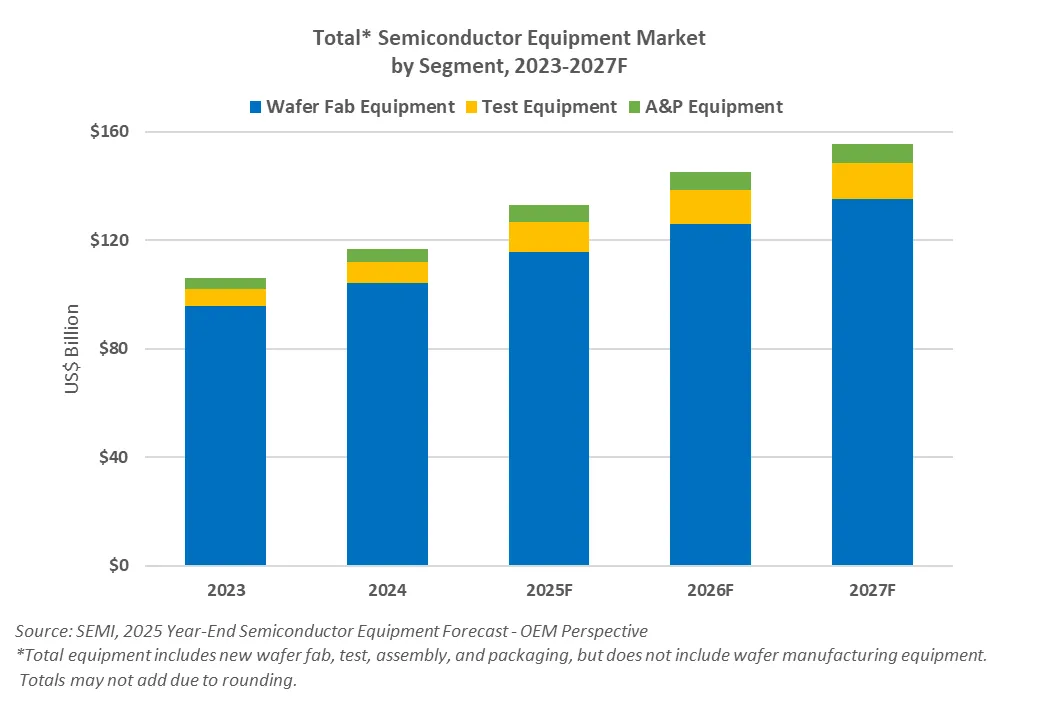 SEMI 預(yù)測:今年全球半導(dǎo)體設(shè)備市場 1330 億美元,2027 年突破 1500 億美元