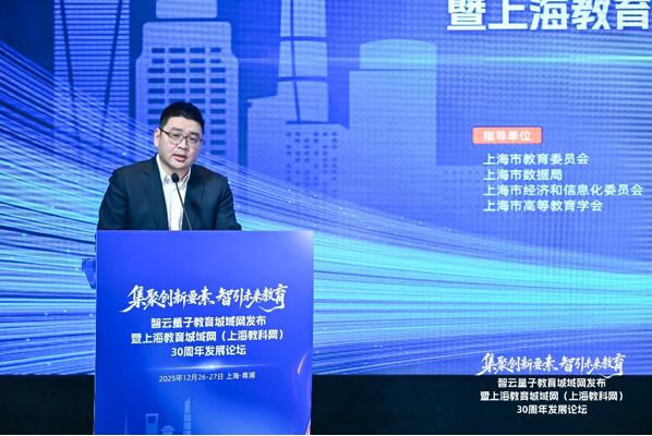 2025年12月26日,在智云量子教育城域網(wǎng)發(fā)布暨上海教育城域網(wǎng)三十周年發(fā)展論壇上,上海市數(shù)據(jù)局副局長翁軼叢、中國電信上海公司副總經(jīng)理龔豪、上海市教育委員會信息化工作處處長韓崇虎、上海市大數(shù)據(jù)中心副主任王明政、上海市經(jīng)濟(jì)和信息化委員會人工智能發(fā)展處副處長陳釗共同啟動“智云量子教育城域網(wǎng)”。