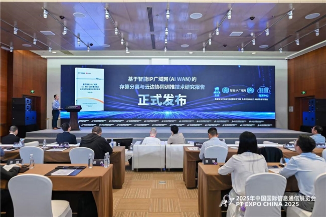 在成果發(fā)布環(huán)節(jié),中國信通院聯(lián)合產(chǎn)業(yè)單位共同發(fā)布了《基于智能IP廣域網(wǎng)(AI WAN)的存算分離與云邊協(xié)同技術(shù)研究報告》(2025),中國信通院技術(shù)與標(biāo)準(zhǔn)研究所互聯(lián)網(wǎng)中心主任高巍對報告進(jìn)行了解讀。報告基于智能IP廣域網(wǎng)提出存算分離與云邊協(xié)同訓(xùn)推技術(shù)方案,回應(yīng)企業(yè)在AI訓(xùn)練與推理中對數(shù)據(jù)安全和成本控制的迫切需求。