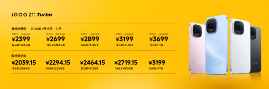此次 iQOO Z11 Turbo 提供五款存儲版本,首銷優(yōu)惠價2399元起,疊加國補后低至2039.15元。這款集強性能、好影像、高質感于一體的中端機,將成為跨次元玩家的全能伙伴。