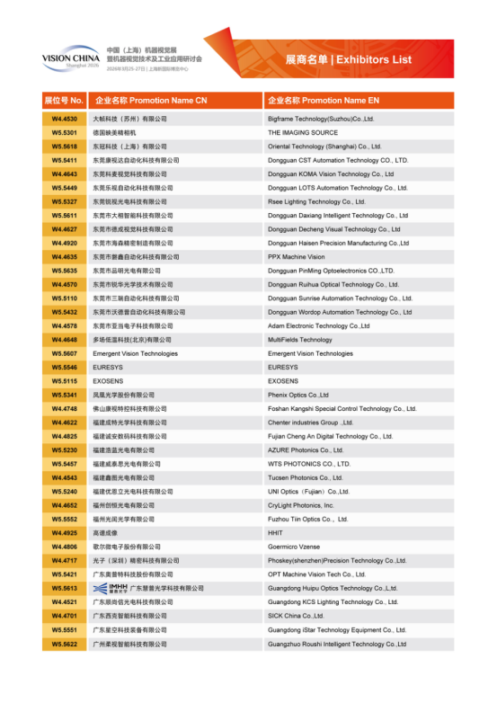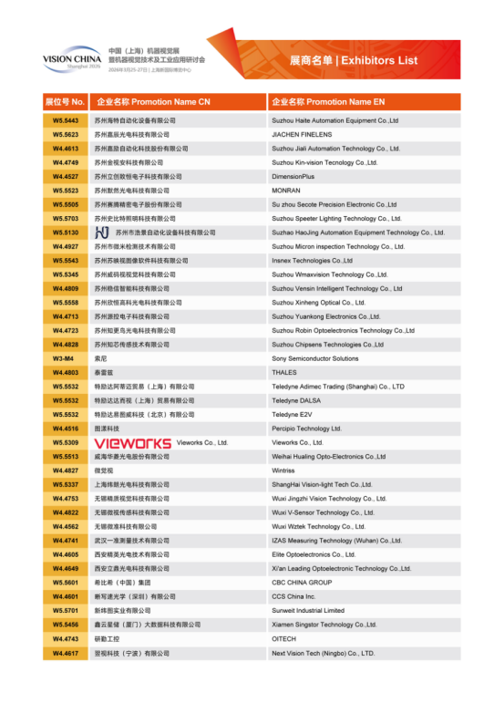 Vision China 2026(上海)展商名單及展位圖公布!