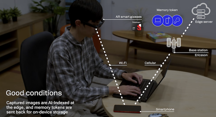 當(dāng)5G或6G網(wǎng)絡(luò)條件允許的情況下,AR眼鏡捕捉的影像數(shù)據(jù)可以傳送至邊緣服務(wù)器進(jìn)行處理,從而使用更強(qiáng)大的AI模型。如果是網(wǎng)絡(luò)狀況不佳,該運(yùn)算又可以自動(dòng)切換回手機(jī)內(nèi)的端側(cè)AI進(jìn)行處理,確保體驗(yàn)不中斷。這套分布式計(jì)算能力,將在延長(zhǎng)AR眼鏡續(xù)航能力的同時(shí),為用戶帶來(lái)更大規(guī)模、更聰明的AI模型運(yùn)算能力。