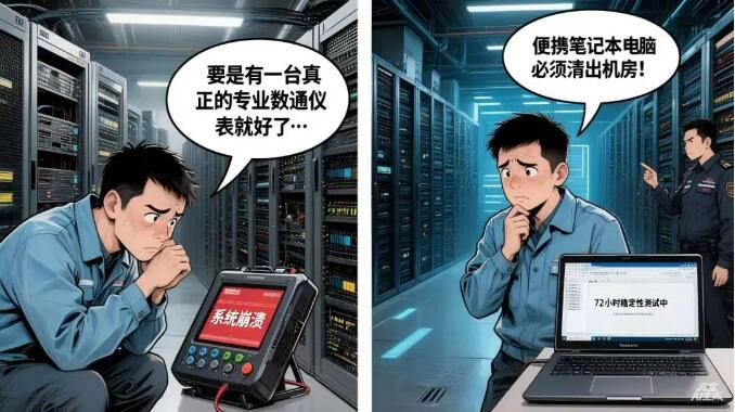 穩(wěn)定性焦慮:非專業(yè)數(shù)通儀表產(chǎn)品面臨產(chǎn)品不穩(wěn)定因素,專業(yè)數(shù)通儀表配合消費級筆記本7×24小時滿負載運行,過熱、藍屏、死機隨時可能導(dǎo)致測試歸零。