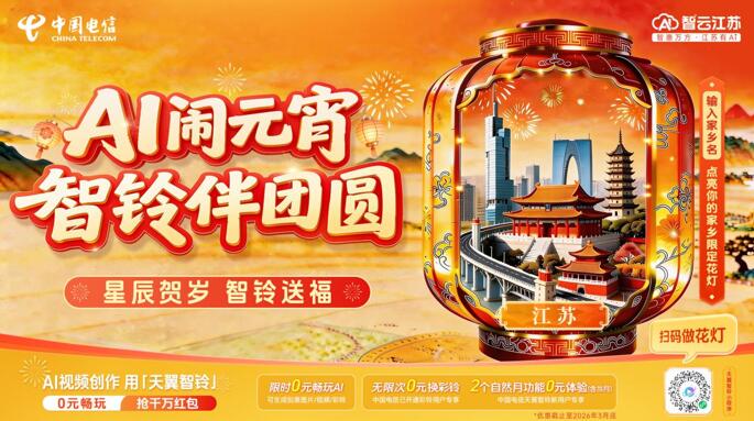馬年啟新章,元宵添喜樂!中國電信天翼智鈴正以AI之力煥新通信體驗(yàn),惠及江蘇用戶,為“智云江蘇”建設(shè)添彩賦能。恰逢元宵佳節(jié)、馬年新始,即刻解鎖天翼智鈴,開啟你的專屬創(chuàng)意之旅,讓每一次來電,都成為一場創(chuàng)意展示,讓每一次等待,都充滿驚喜與美好,在新的一年,讓每一通來電都有專屬精彩!