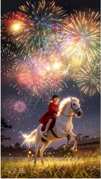 南京地鐵里,小朋友盯著媽媽手機(jī)屏幕歡呼:“媽媽我在跑!”——她的照片生成了一段正騎著小馬在煙花下奔跑的視頻。