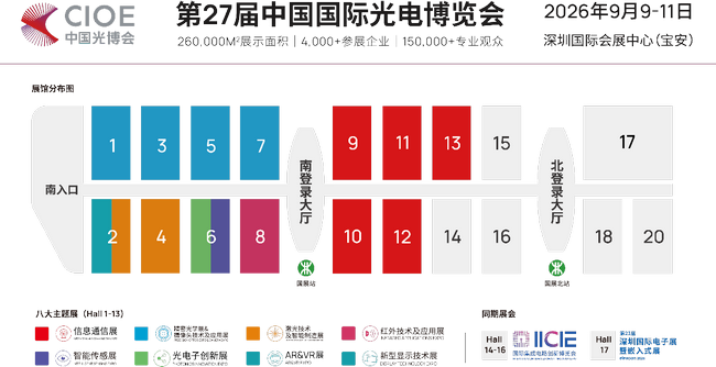 覆蓋光電全產(chǎn)業(yè)鏈的綜合型展會---第二十七屆中國國際光電博覽會(CIOE中國光博會)將于2026年9月9-11日在深圳國際會展中心舉辦,F(xiàn)報(bào)名通道已全面開啟,即刻登記成功可獲取CIOE2025全套會刊!即刻登記參觀