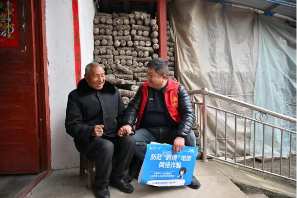陳鋒下鄉(xiāng)為寨根鄉(xiāng)桑樹村村民講解反詐,守牢群眾錢袋子