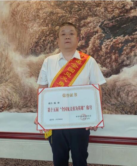 2025年7月陳鋒被評(píng)為第十五屆“全國見義勇為英雄”稱號(hào)