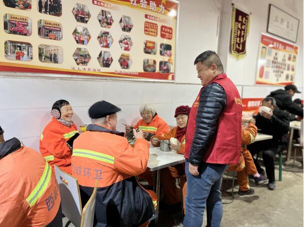 陳鋒凌晨四點(diǎn)在西峽縣愛心早餐店與環(huán)衛(wèi)工人聊天,記錄困難