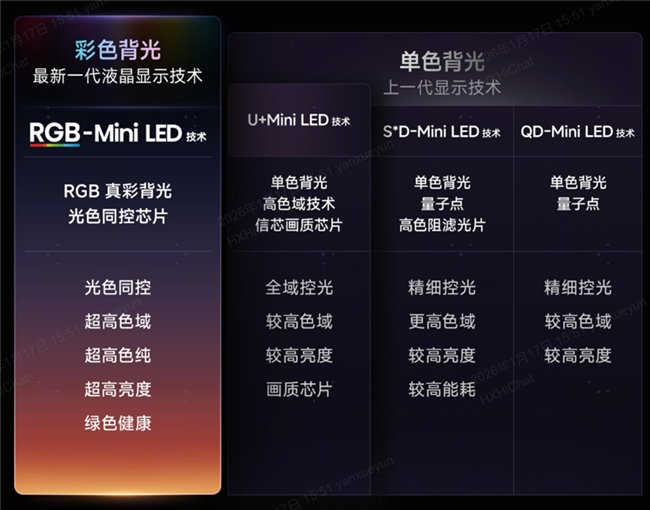 其實答案很簡單:買電視,買的是全方位的極致觀影體驗,原生色彩、綠色節(jié)能、健康護眼缺一不可。若以這個核心標準來衡量,二者的差距立見分曉——比起只盯著“高亮、高色域”做文章的SQD-Mini LED,RGB-Mini LED才是能兼顧所有體驗的“理想長期伴侶”,更是實打實全球公認的領先一代的顯示技術。
