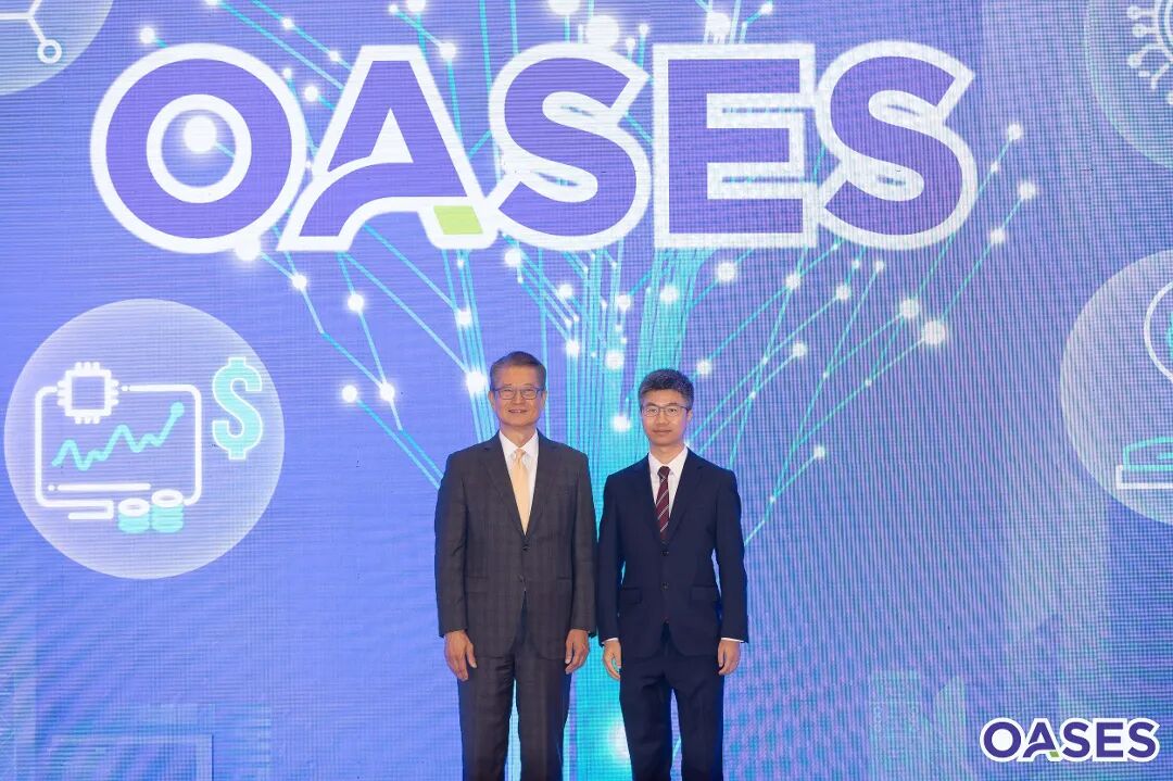 特區(qū)政府財(cái)政司司長(zhǎng)陳茂波(左)與佳都科技董事、高級(jí)副總裁劉佳(右)在簽署儀式現(xiàn)場(chǎng)合影(引進(jìn)辦供圖)