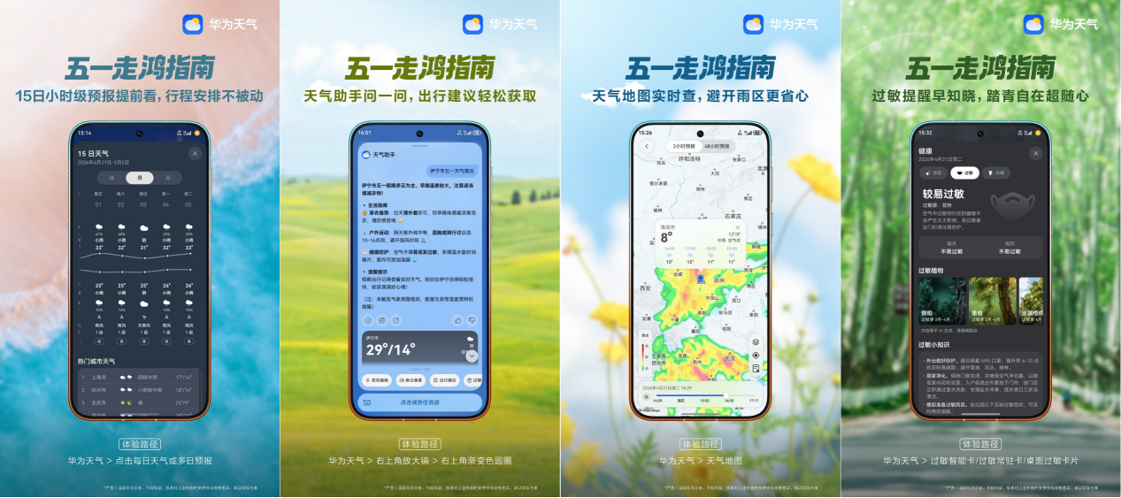 從出發(fā)前的全盤規(guī)劃,到旅途中的靈活應(yīng)對(duì),華為天氣正在從一個(gè)查詢工具轉(zhuǎn)變?yōu)槟闵磉?4小時(shí)在線的生活決策助手——春夏秋冬每一天,不只告訴你天氣,更告訴你如何應(yīng)對(duì)天氣。大家將系統(tǒng)升級(jí)至HarmonyOS 6.1.0.120,再去應(yīng)用市場(chǎng)將華為天氣App升級(jí)至最新版本,即可體驗(yàn)以上四大功能啦。