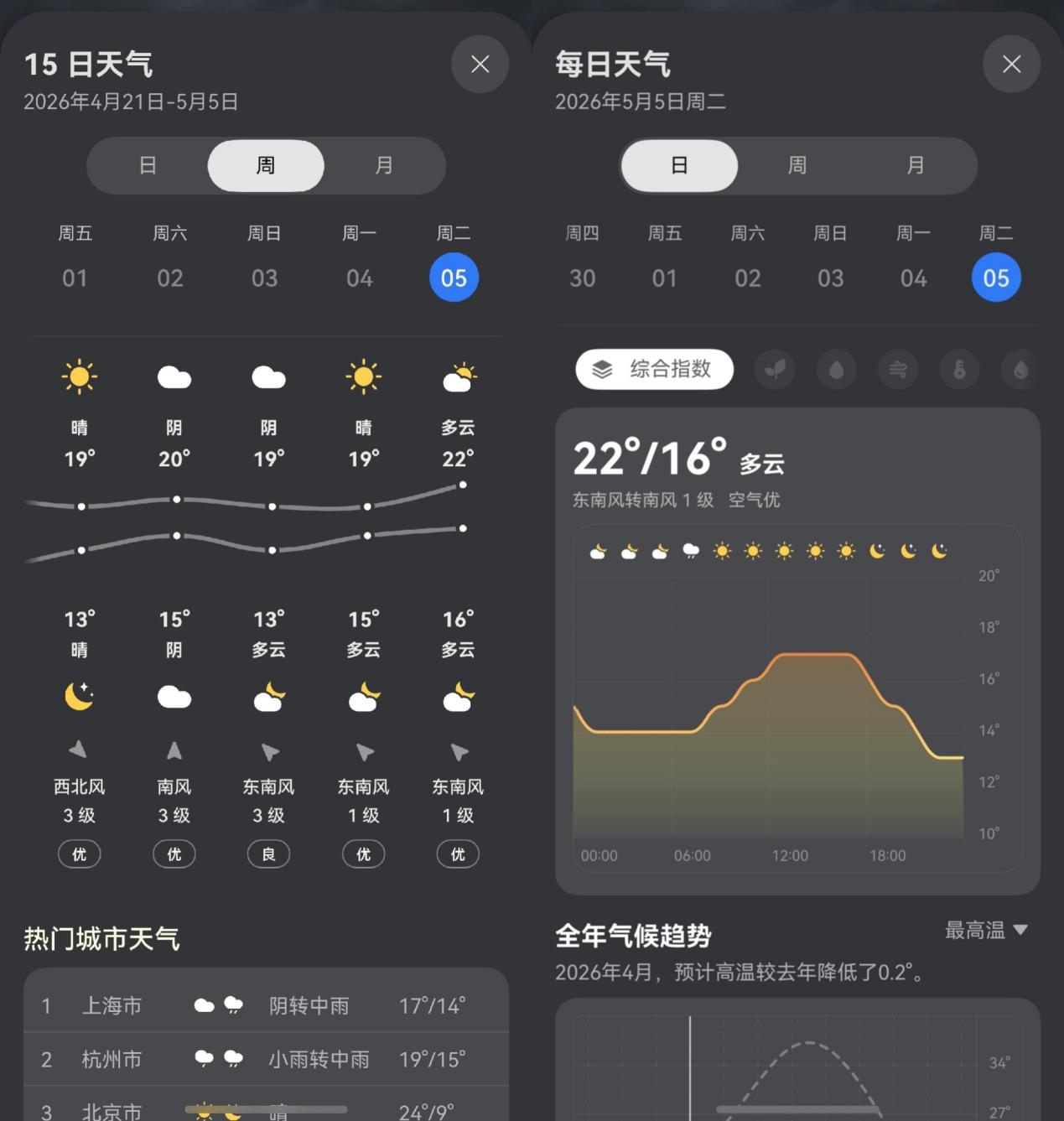 五一出行穿啥拿不準(zhǔn),問(wèn)一句華為天氣24小時(shí)天氣助手比攻略還靠譜