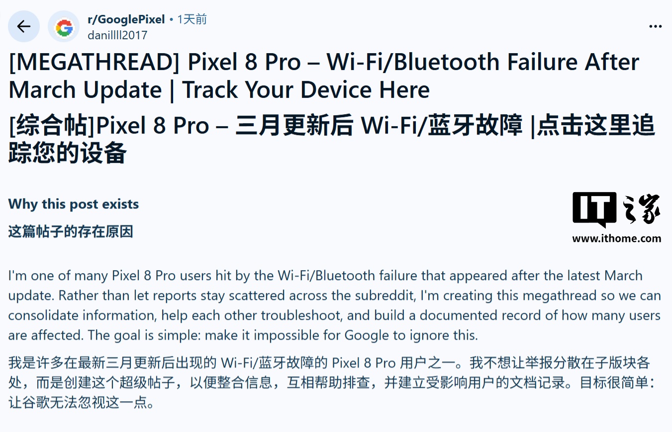 IT之家曾于 3 月 19 日?qǐng)?bào)道,包括 Pixel 10 系列、Pixel 9 系列、Pixel 8 Pro 等用戶反饋,反饋安裝谷歌 3 月更新后,出現(xiàn)在鎖屏或息屏顯示(AoD)界面死機(jī)問題。