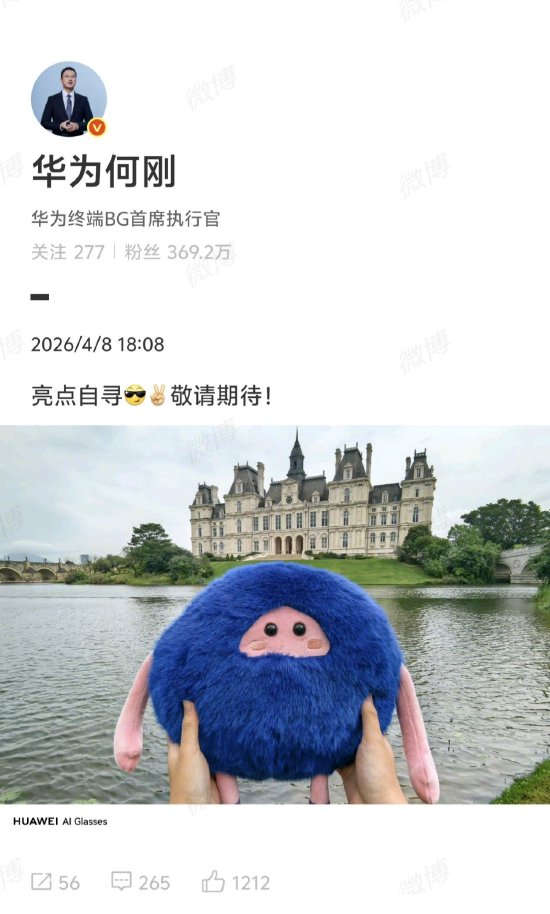 4月8日晚間消息,華為終端BG首席執(zhí)行官何剛今日在微博上發(fā)文稱,“亮點(diǎn)自尋,敬請期待!”同時(shí)配了一張帶有HUAWEI AI Glasses水印的圖片。