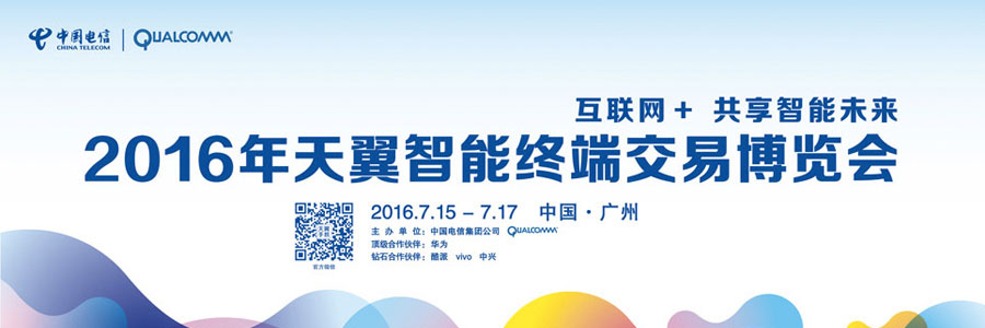 2016年7月15-17日,中國(guó)電信攜手美國(guó)高通公司將在廣東省廣州市廣交會(huì)展館舉辦"2016年天翼智能終端交易博覽會(huì)"。本屆博覽會(huì)將以"互聯(lián)網(wǎng)+,共享智能未來(lái)"為主題,打造最具前瞻性、科技性、時(shí)尚性的行業(yè)高品質(zhì)展會(huì)。博覽會(huì)設(shè)立了互聯(lián)網(wǎng)+終端、互聯(lián)網(wǎng)+行業(yè)、互聯(lián)網(wǎng)+智慧家庭、互聯(lián)網(wǎng)+創(chuàng)新創(chuàng)業(yè)、互聯(lián)網(wǎng)+互動(dòng)樂(lè)園五大主題展區(qū)。