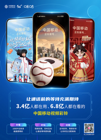 在2月27日開幕的巴塞羅那世界移動通信大會(MWC2023)上,中國移動首次發(fā)布了5G視頻彩鈴海外商用方案。據(jù)中國移動方面發(fā)布的數(shù)據(jù),視頻彩鈴業(yè)務(wù)自從上線以來,用戶數(shù)年均增長150%,播放次數(shù)年均增長250%。在元宇宙浪潮之下,視頻彩鈴作為沉浸式社交體驗的應(yīng)用標(biāo)桿,正隨著中國移動5G走向世界,為全球產(chǎn)業(yè)發(fā)展貢獻(xiàn)中國標(biāo)準(zhǔn)、中國方案、中國力量。