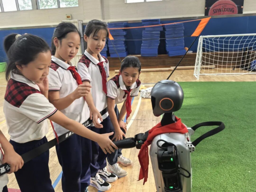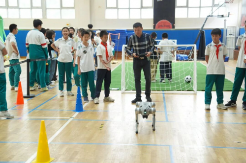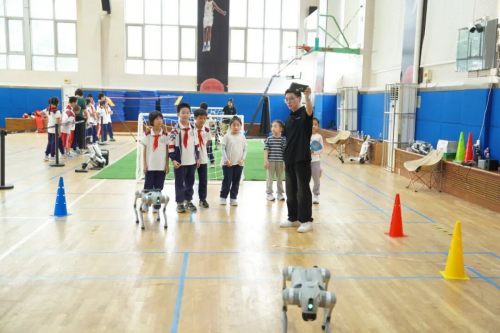 開幕式結(jié)束后,硅基公園在學(xué)校體育館搭建了主題為“未來(lái)已來(lái)——人工智能與具身智能主題體驗(yàn)館”,各類AI大模型體驗(yàn)項(xiàng)目和機(jī)器人展區(qū)引人入勝。機(jī)器狗接力賽場(chǎng)上,裝載智能程序的機(jī)器狗在同學(xué)們的操縱下敏捷穿梭于錐桶障礙間,精準(zhǔn)完成接力動(dòng)作,引發(fā)圍觀學(xué)生陣陣喝彩。機(jī)器人飛花令項(xiàng)目則生動(dòng)呈現(xiàn)出文理交融的魅力。機(jī)器人精準(zhǔn)識(shí)別語(yǔ)音并應(yīng)答詩(shī)句,偶爾出現(xiàn)的趣味性誤差更激起全場(chǎng)善意的歡笑!霸瓉(lái)機(jī)器人能和我們共誦古詩(shī)!”來(lái)自景山學(xué)校遠(yuǎn)洋分校六年級(jí)學(xué)生雀躍道,“這讓我真切感受到傳統(tǒng)文化與科技的交融之美!