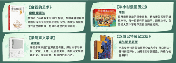 如果你渴望在不同的知識(shí)領(lǐng)域充實(shí)自我,那么以下四本佳作值得一讀。摩根·豪澤爾所著《金錢(qián)的藝術(shù)》,以20個(gè)與金錢(qián)相關(guān)的智慧點(diǎn)為核心,深入淺出解析金錢(qián)背后的復(fù)雜心理與行為邏輯,即便無(wú)專(zhuān)業(yè)金融教育背景,也能助你掌握駕馭金錢(qián)的能力,為個(gè)人財(cái)務(wù)認(rèn)知搭建清晰框架。陳磊的《半小時(shí)漫畫(huà)歷史》打破傳統(tǒng)歷史讀物的枯燥感,摒棄冗余細(xì)節(jié),用趣味段子串聯(lián)歷史脈絡(luò),讓讀者在輕松閱讀中自然牢記歷史知識(shí),感受歷史的生動(dòng)魅力。茅盾文學(xué)獎(jiǎng)得主梁曉聲的《梁曉聲文學(xué)課》,通過(guò)7堂深度思考課,深入探討文學(xué)與教育、文化、人性、社會(huì)的關(guān)聯(lián),更傳授以文學(xué)慰藉心靈、抵御寂寞、梳理內(nèi)心的方法,為精神世界提供溫暖滋養(yǎng)。查爾斯·狄更斯的《雙城記特裝紀(jì)念版》作為京東專(zhuān)享版本,不僅收錄經(jīng)典文學(xué)力作,更有書(shū)口刷邊、獨(dú)特前后環(huán)襯的精致設(shè)計(jì),搭配3款專(zhuān)屬贈(zèng)品與升級(jí)飛機(jī)盒保護(hù),兼具閱讀價(jià)值與收藏意義。