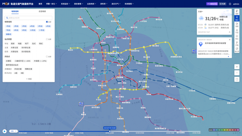 在城市災(zāi)害防控這一核心領(lǐng)域,墨跡天氣構(gòu)建的精準(zhǔn)預(yù)警體系無(wú)疑是守護(hù)城市安全的“先手棋”。作為國(guó)家預(yù)警信息的重要分發(fā)平臺(tái)之一,墨跡天氣憑借覆蓋全國(guó)用戶的觸達(dá)網(wǎng)絡(luò)和成熟的信息推送體系,能夠?qū)?guó)家預(yù)警發(fā)布中心發(fā)布的臺(tái)風(fēng)、暴雨、高溫等各類預(yù)警信息,通過(guò) App 彈窗、推送通知、首頁(yè)顯著提示等多元形式高效傳遞給公眾,每年有效觸達(dá)人次高達(dá)3.2億,為全民防災(zāi)減災(zāi)筑牢第一道防線。同時(shí),針對(duì)暴雨內(nèi)澇、暴雪等城市高頻災(zāi)害,墨跡天氣進(jìn)一步發(fā)揮氣象數(shù)據(jù)和AI技術(shù)優(yōu)勢(shì),構(gòu)建起針對(duì)城市交通的 “精準(zhǔn)預(yù)警、智能決策、精準(zhǔn)響應(yīng)”惡劣天氣防范應(yīng)對(duì)全鏈條安全保障體系,為軌道交通運(yùn)營(yíng)單位提供覆蓋預(yù)測(cè)、決策、調(diào)度全流程的智慧防汛解決方案。例如在華中某城市汛期應(yīng)對(duì)中,該服務(wù)提前24小時(shí)精準(zhǔn)鎖定3條地鐵易澇區(qū)段,為相關(guān)部門開展應(yīng)急處置爭(zhēng)取到關(guān)鍵時(shí)間;與天津地鐵聯(lián)合打造的氣象輔助決策平臺(tái),整合了地面監(jiān)測(cè)站、衛(wèi)星等多源數(shù)據(jù),構(gòu)建起“地面-高架-空中”的多維感知網(wǎng)絡(luò),將預(yù)報(bào)精準(zhǔn)度提升至站點(diǎn)級(jí)別,汛期助力天津軌交高效調(diào)整行車計(jì)劃,有效保障了軌道交通運(yùn)營(yíng)安全。