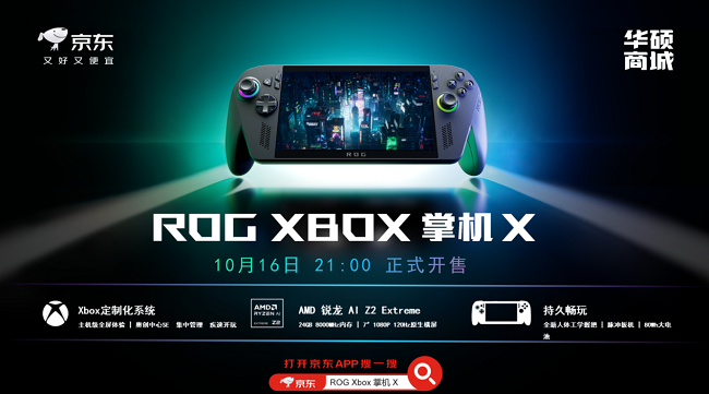 盡掌控,超會玩!首款純血XBOX掌機,ROG XBOX掌機X于北京時間10月16日15:00正式發(fā)布,并于當天晚21:00正式開售,首發(fā)價6499元。ROG此次聯(lián)合微軟XBOX團隊,實現(xiàn)多點定制,帶來Xbox全屏體驗、Xbox定制化系統(tǒng)、全新人體工學(xué)握把等多項創(chuàng)新設(shè)計,實現(xiàn)純血進化。同時首發(fā)搭載AMD銳龍AI Z2 Extreme處理器、配備7英寸1080P 120Hz原生橫屏、內(nèi)置80Wh電池,內(nèi)外全面升級,賦予玩家全新掌機體驗。