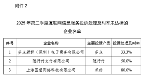 在互聯(lián)網(wǎng)信息服務(wù)投訴方面,2025年第三季度,互聯(lián)網(wǎng)信息服務(wù)投訴平臺收到的互聯(lián)網(wǎng)用戶投訴中,服務(wù)功能類投訴占比47.2%,客服渠道類投訴占比18.2%,個人信息保護類投訴占比17.9%,其他類投訴占比16.7%。在接入平臺的178家互聯(lián)網(wǎng)企業(yè)中,多點等3家企業(yè)投訴處理及時率較低,工信部已督促相關(guān)企業(yè)妥善處理用戶反映的問題。