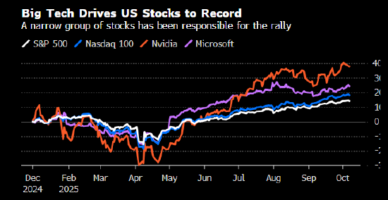隨著美國(guó)股市的創(chuàng)紀(jì)錄上漲推高估值,圍繞AI泡沫的擔(dān)憂升溫?萍脊蓹(quán)重較高的納斯達(dá)克(23043.3778, 255.02, 1.12%)100指數(shù)今年上漲18%,預(yù)期市盈率為28倍,而其10年平均水平為23倍。