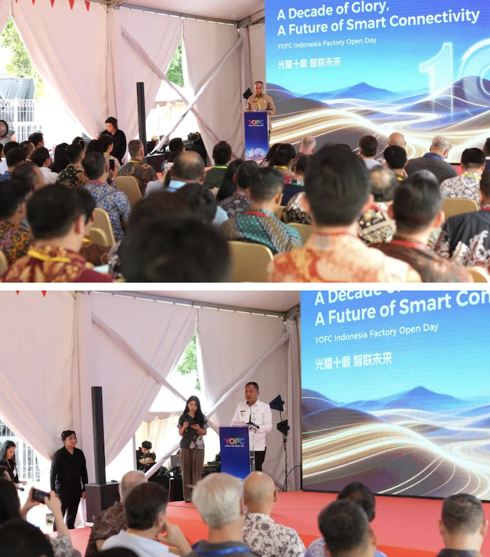 印尼人口流動(dòng)部總司長(zhǎng)Velix Fernando Wanggai、卡拉旺市副市長(zhǎng)H. Maslani分別發(fā)表致辭,表示長(zhǎng)飛公司作為印尼電信和數(shù)字基礎(chǔ)設(shè)施行業(yè)的領(lǐng)軍企業(yè),不僅推動(dòng)卡拉旺地區(qū)的人口就業(yè)和經(jīng)濟(jì)增長(zhǎng),更以其創(chuàng)新精神為印尼的數(shù)字互聯(lián)互通發(fā)揮了重要作用。