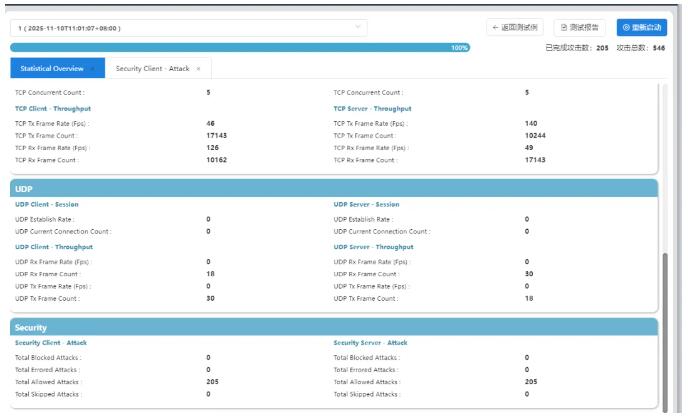 圖7 安全攻擊測試實(shí)時統(tǒng)計(jì)結(jié)果