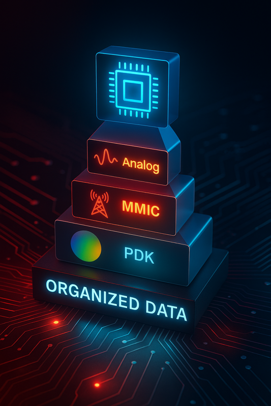 圖1:結(jié)構(gòu)化數(shù)據(jù)構(gòu)筑了整個設(shè)計層級的基石——從PDK到SoC,實現(xiàn)規(guī);、可追溯性與AI賦能