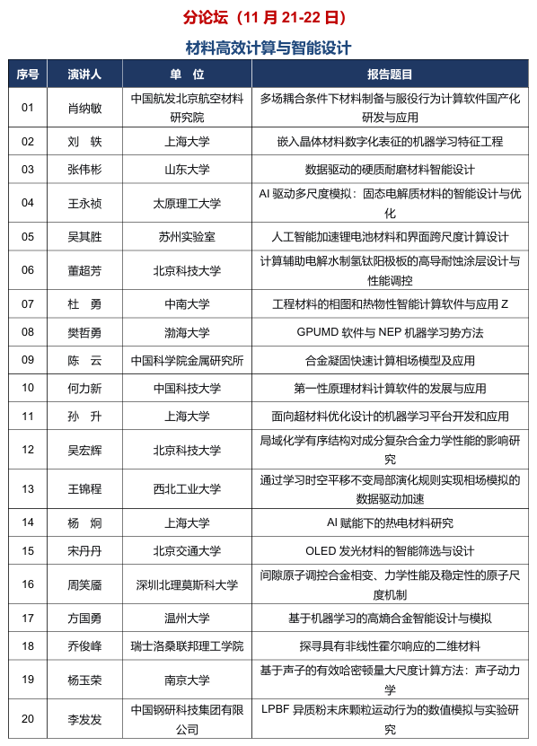 11月20日:開幕式、大會報(bào)告,新材料大數(shù)據(jù)創(chuàng)新聯(lián)盟會員大會