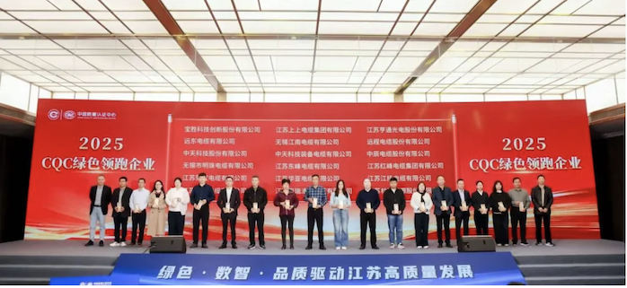 大會期間,亨通光電榮獲中國質量認證中心頒發(fā)的“CQC 2025綠色領跑企業(yè)”。