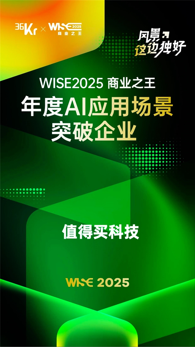 11月27日,由科技媒體36氪主辦的“WISE2025 商業(yè)之王”大會(huì)在京召開,值得買科技憑借在“AI+消費(fèi)”領(lǐng)域的持續(xù)創(chuàng)新與落地實(shí)踐,成功入選“年度AI應(yīng)用場(chǎng)景突破企業(yè)”榜單。