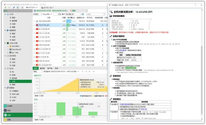 大型政務云平臺遭遇核心業(yè)務運行緩慢問題,初步懷疑網絡帶寬不足。在利用信而泰xnSight網絡應用性能管理系統(tǒng)進行全流量采集與分析的基礎上,疊加DeepSeek AI智能診斷功能,迅速識別出網絡下行方向存在異常丟包現(xiàn)象。
