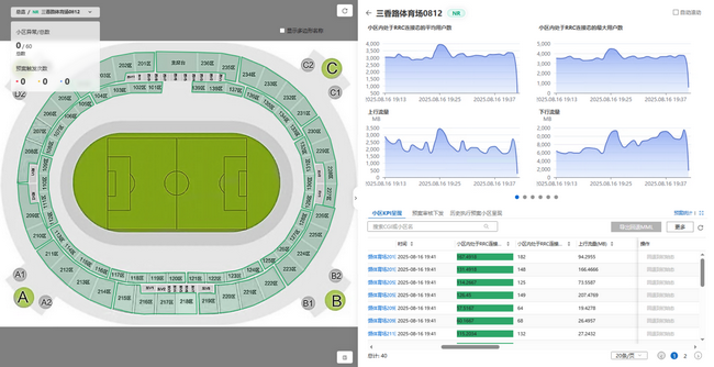全景可視,智能預警。通過專用智能平臺對體育場及周邊區(qū)域的網絡運行狀態(tài)進行多維度、分鐘級的實時可視化監(jiān)控,自動識別并渲染可能存在性能風險的網絡小區(qū),本場賽事期間成功預警61次,為主動優(yōu)化贏得先機。