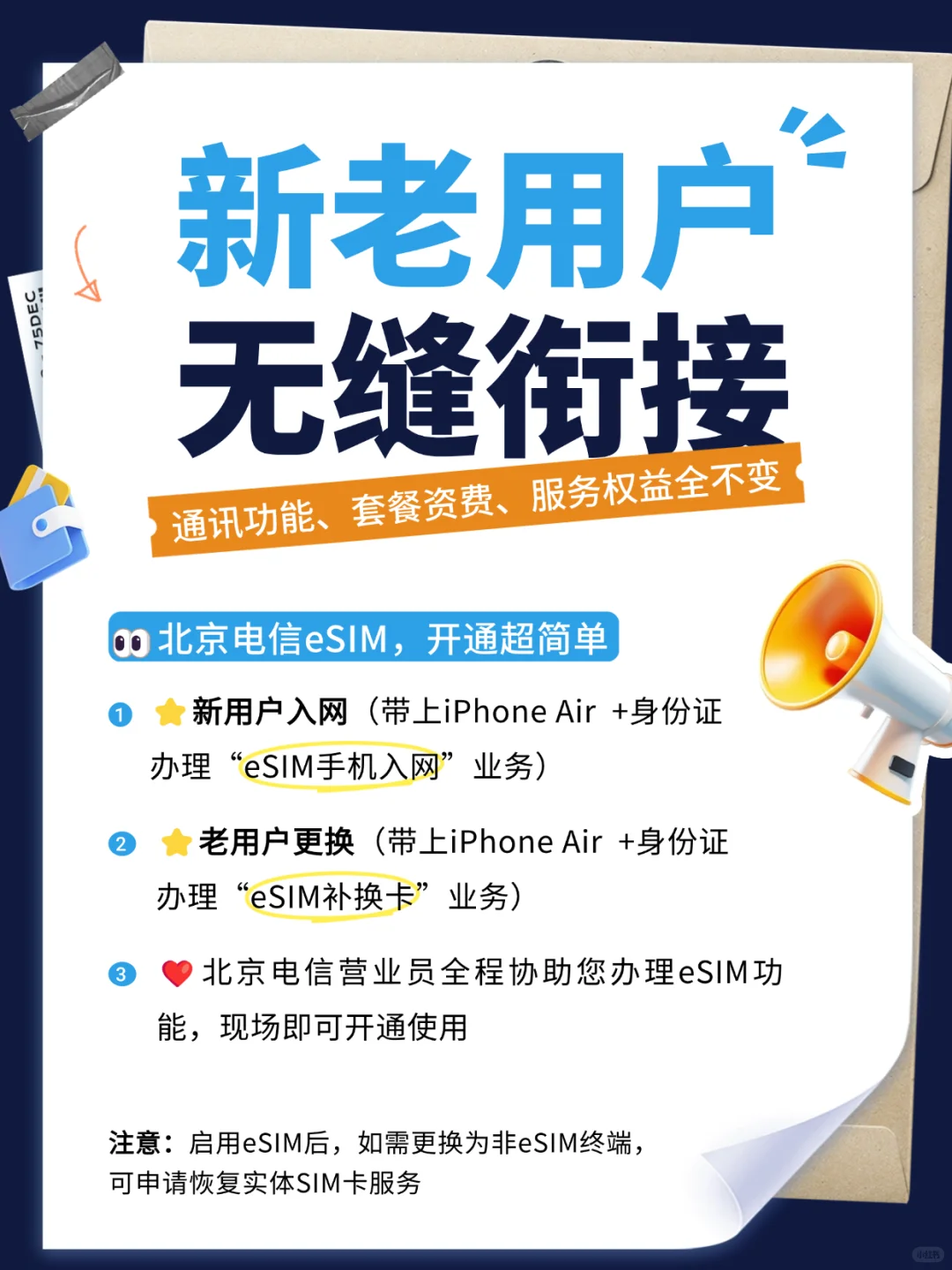 新用戶入網(wǎng):帶上 iPhone Air  + 身份證,辦理“eSIM 手機入網(wǎng)”業(yè)務(wù)
