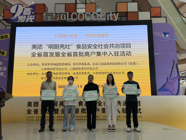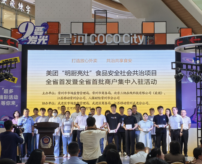 近日,常州市市場監(jiān)管局、常州市商務(wù)局、北京三快在線科技有限公司(美團)、中國移動江蘇公司常州分公司(以下簡稱“常州移動”)、人保財險常州市分公司聯(lián)合舉行美團“明廚亮灶”食品安全社會共治項目全省首發(fā)暨全省首批商戶集中入駐活動,在江蘇率先構(gòu)建“政府監(jiān)管+企業(yè)自律+公眾監(jiān)督”三位一體的食品安全智慧共治新模式。