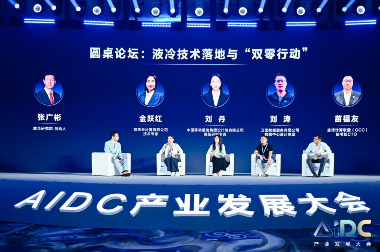 大會(huì)最后,在益企研究院張廣彬的主持下,京東云計(jì)算有限公司金躍紅、中國(guó)移動(dòng)通信集團(tuán)設(shè)計(jì)院有限公司劉丹、萬(wàn)國(guó)數(shù)據(jù)服務(wù)有限公司劉濤、全球計(jì)算聯(lián)盟(GCC)苗福友等嘉賓齊聚圓桌論壇,共同探討AIDC的未來(lái)發(fā)展。圍繞液冷技術(shù)落地,嘉賓們深入剖析了液冷泄漏、冷板堵塞腐蝕等挑戰(zhàn),并就如何解決液冷工質(zhì)與材料兼容性問(wèn)題展開討論。此外,嘉賓們還分享了“雙零行動(dòng)”的創(chuàng)新實(shí)踐與最新進(jìn)展,為AIDC的未來(lái)發(fā)展提供思路與指引。