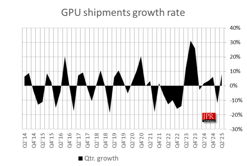 JPR 報(bào)告:2025Q2 PC GPU 出貨 7470 萬(wàn)件,環(huán)比增長(zhǎng) 8.4%