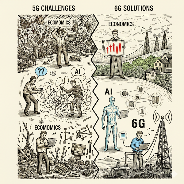 6G正在從5G“順?biāo)浦邸钡睦硐胫髁x中汲取教訓(xùn),轉(zhuǎn)而擁抱更為實(shí)際、更具經(jīng)濟(jì)性的策略。面對5G的問題選擇知錯就改,用一把集合了AI、更具經(jīng)濟(jì)性的瑞士軍刀,試圖成為面向更多人的趁手工具。